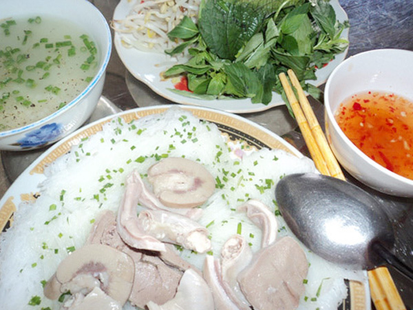 Nhấc đũa, miếng bánh ngập trong chén nước chấm đậm đà sẽ khiến bạn ngất ngây trong cái vị chua chua ngọt ngọt, vị thanh thanh nhẹ nhàng của từng sợi bánh trắng tinh, ráo rỏng. Đĩa lòng ăn kèm với bánh phải có đủ tim, gan, cật, phèo non và thịt ba chỉ. Lòng ngon phải thật giòn và ngọt. Thịt luộc không quá khô để khi ăn, thực khách có thể cảm nhận trọn vẹn được vị bùi béo mọng nước trong từng sớ thịt.